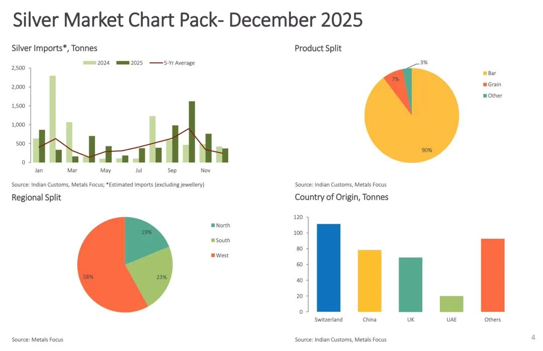 During this period, continuing physical tightness has further amplified upward price momentum. This reflects ongoing US tariff concerns, strong investment demand, and a persistent fundamental deficit that has been in place since 2021. Earlier uncertainty about China’s silver export policy briefly raised fears of supply disruptions, though these concerns have eased in recent weeks.在此期间,持续的实物紧俏进一步放大了价格上涨的动能。这反映了持续的美国关税担忧、强劲的投资需求以及自 2021 年以来一直存在的持续基本缺口。早些时候关于中国白银出口政策的不确定性曾短暂引发供应中断的担忧,但这些担忧在最近几周已有所缓解。